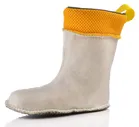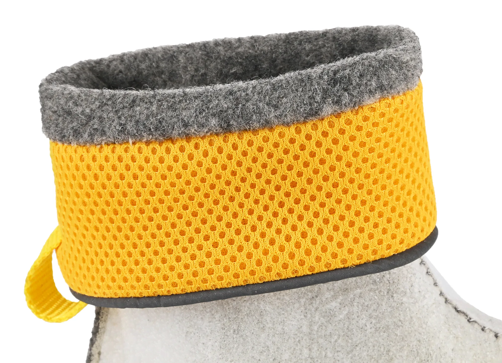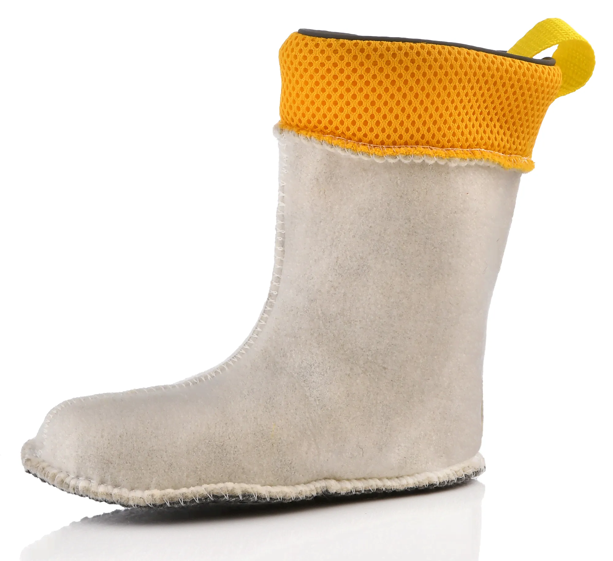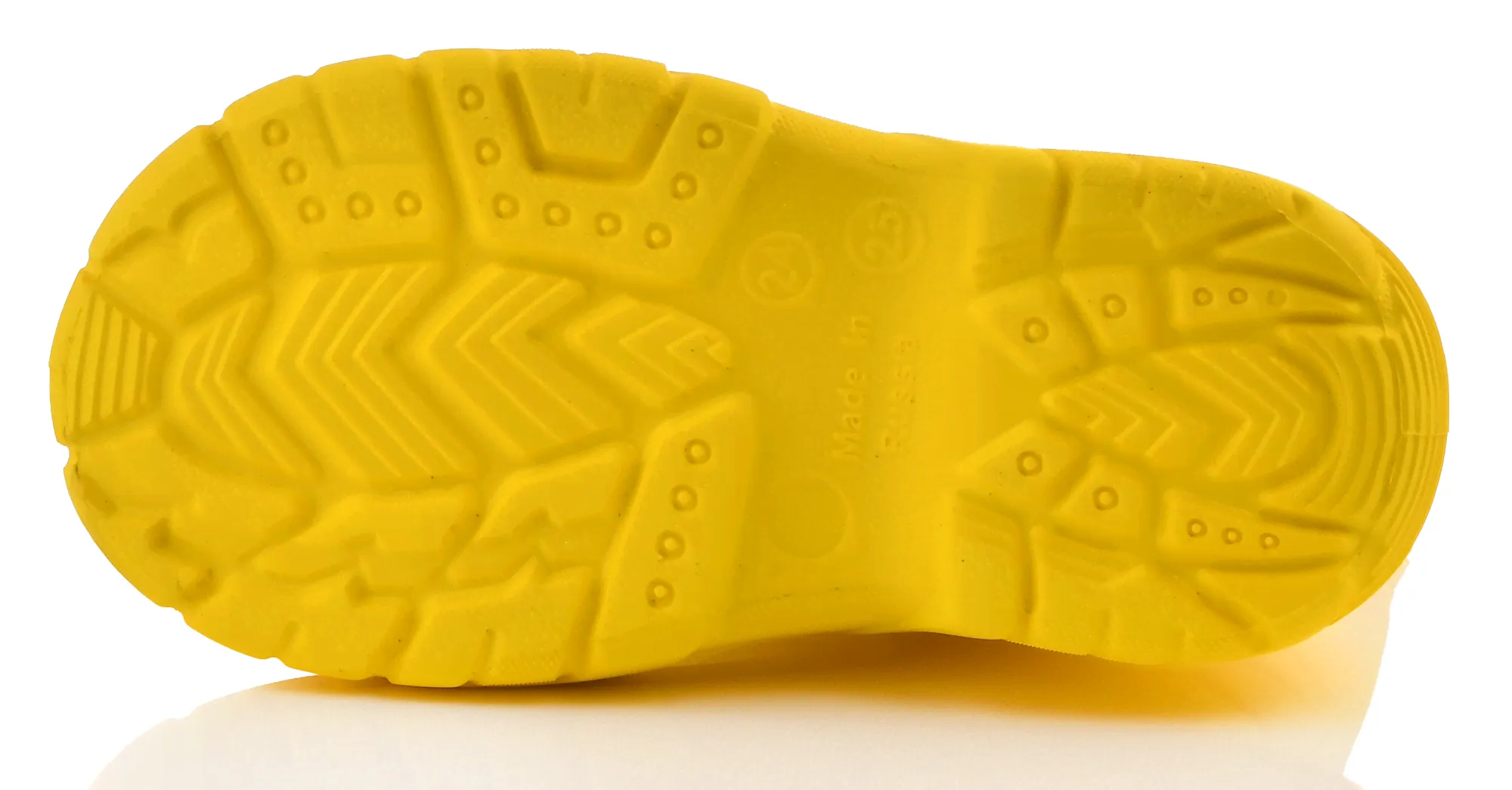 Демисезонные сапоги Pixel Dr.Rain SOFT line — это остромодные сапоги отличающиеся ещё и биомеханическими свойствами : они помогают ребёнку уверенно ходить. Линии на союзке продуманы так, чтобы голенище лёгко сгибалось, следуя за движениями ноги. Комбинированный протектор на подошве хорошо сцепляется с поверхностью, боковые ступеньки не собирают грязь в подошве. Ступенчатый выступ Safe Fun помогает легко снимать сапоги, и амортизирует удары, когда ребёнок активно болтает ногами. Оригинальные линии создают современный силуэт, а сочетание гладкой и шероховатой фактур привлекают внимание, завершает композицию сапога насыщенный жёлтый цвет. Съёмный чулок с сетчатым верхом жёлтого привлекает к себе внимание (таких детских сапог ещё не было) и создаёт ощущение безопасности и комфорта: - отворот пришит по краю светоотражающим шнуром, чтобы ребёнок был приметен для водителей, едущих по тёмным дворам; - задний наружный ремень на чулке помогает самостоятельно надевать чулок на ножку; - ступня ребёнка встречается с мягкой байкой, стелька дублирована поролоном достаточной толщины, чтобы амортизировать ударную волну шага; - снаружи поролон закрыт фольгированным полотном, которое отвечает за удержание тепла и износостойкость; - после прогулки чулок легко достать и просушить, если лужа оказалась слишком глубока, но и после стиральной машинки он не потеряет своих свойств, если температура при стирке не превысит 30 градусов.